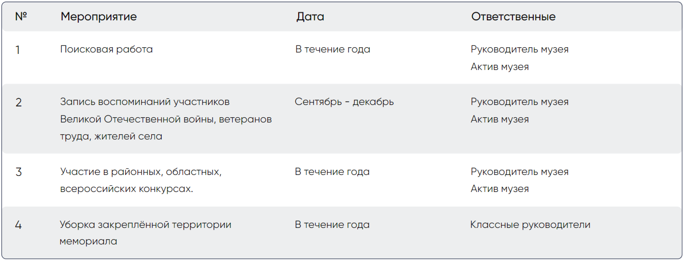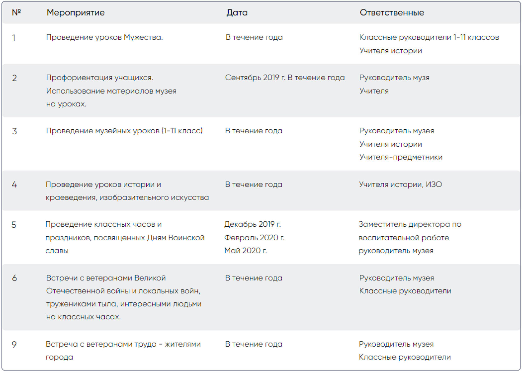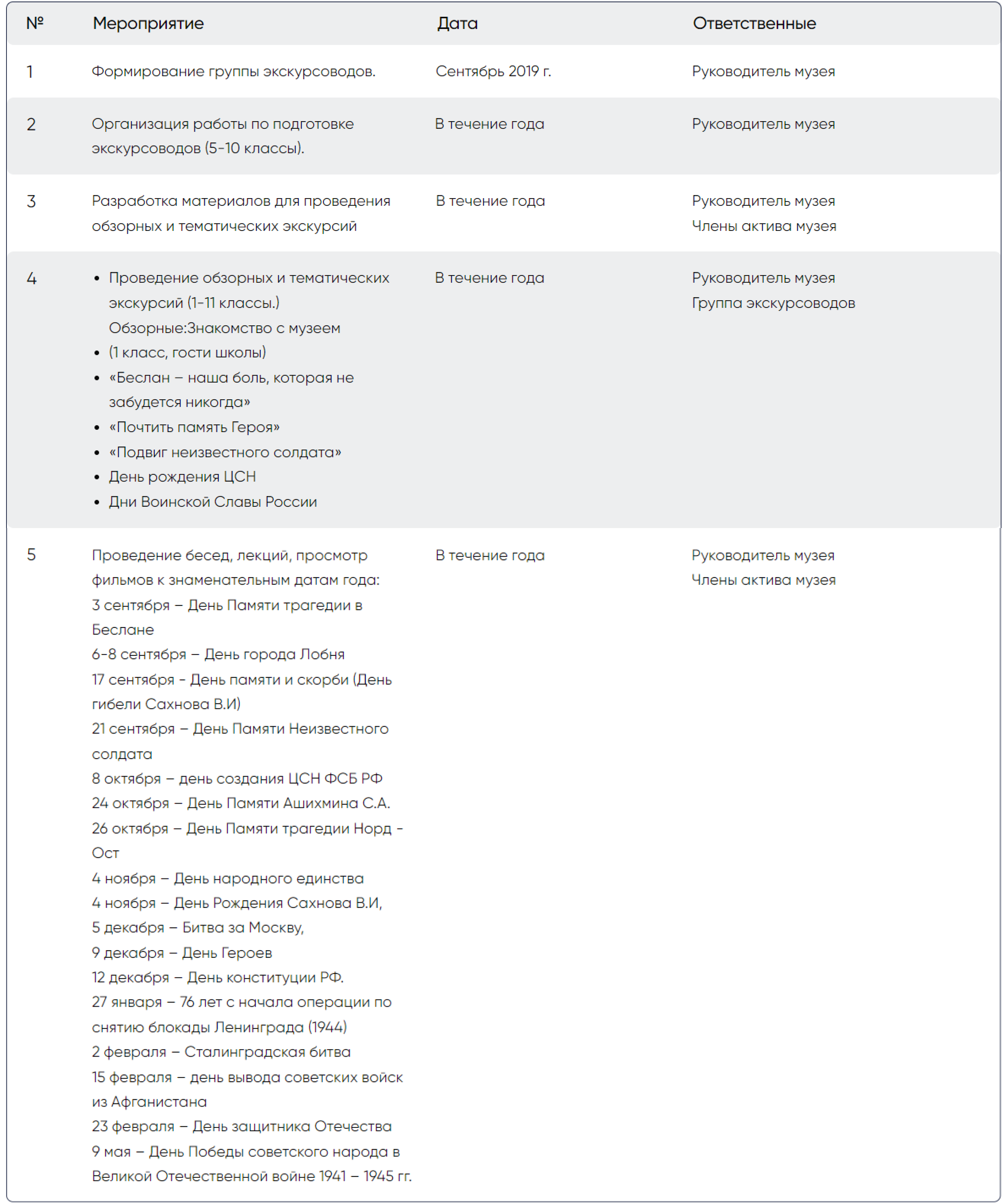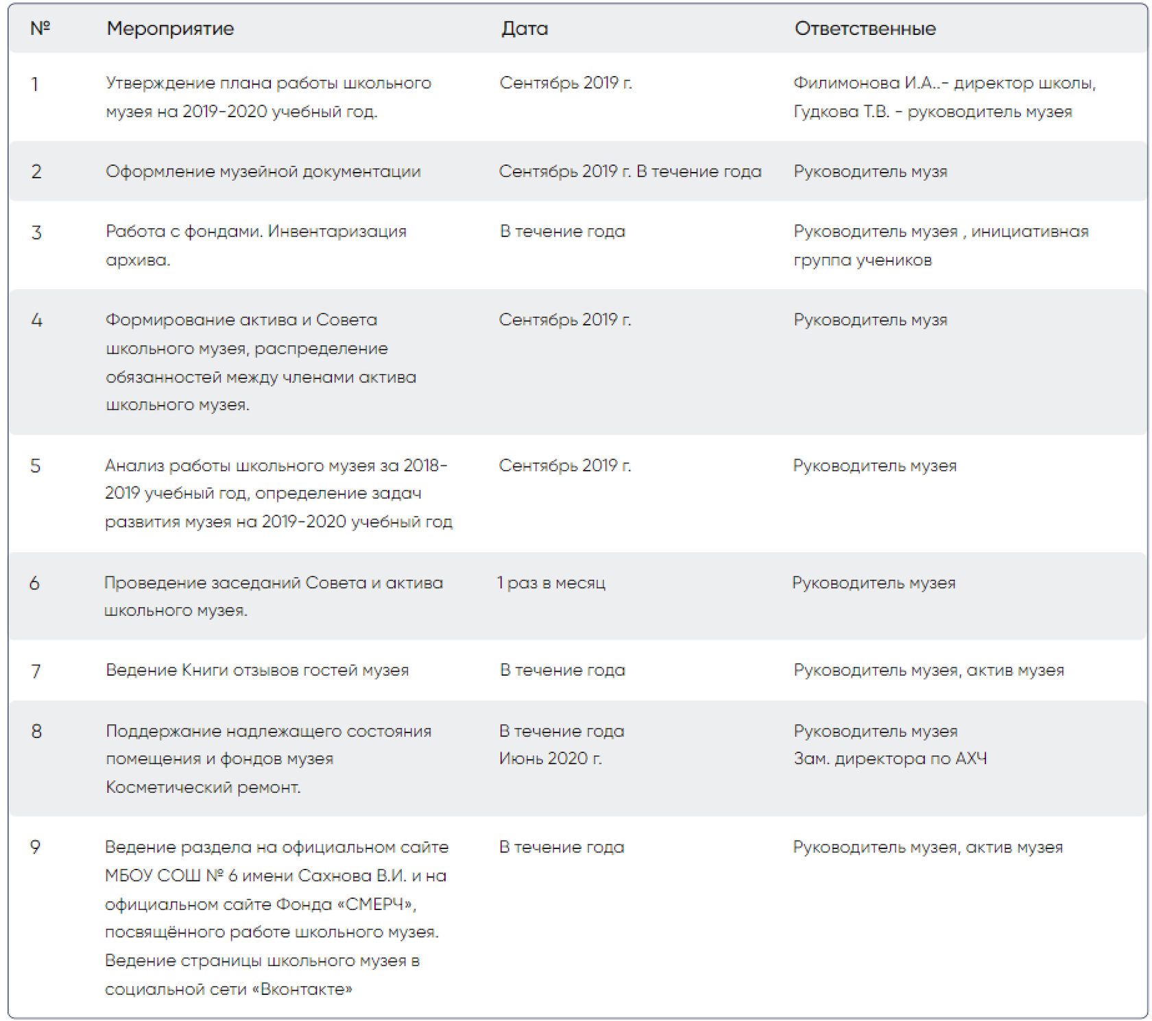 Утверждение плана работы школьного музея на 2019-2020 учебный год.